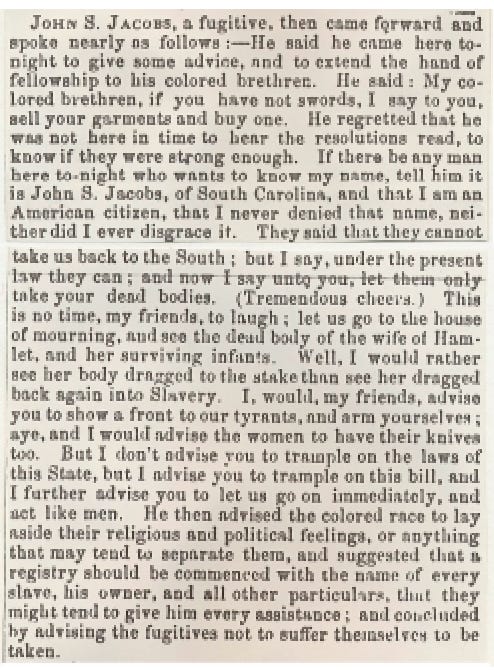 ….and then we wove through a reading from the National Anti-Slavery Standard reporting a John S. Jacobs speech demanding enslaved and free people of African descent engage in armed self-defense against the Fugitive Slave Act.
