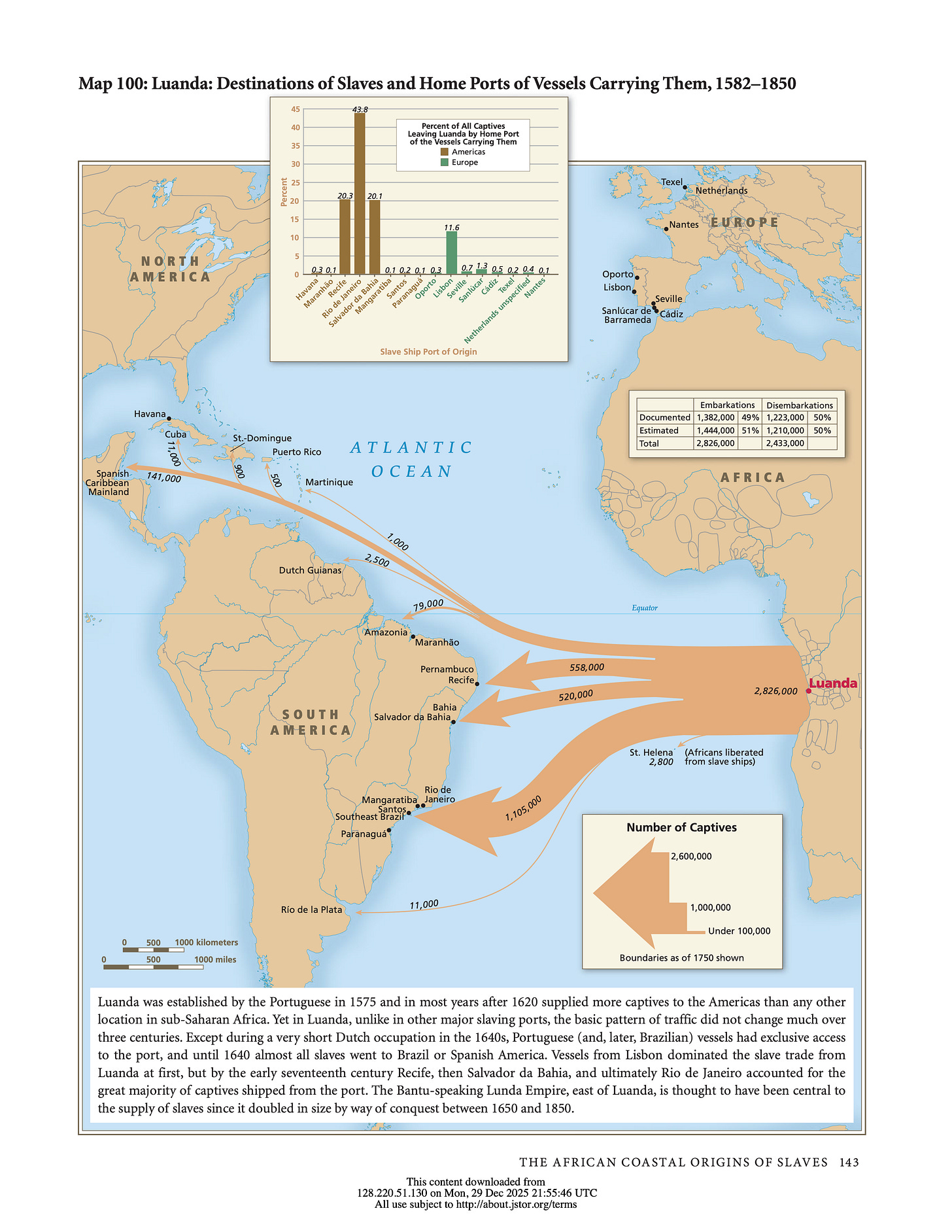 Luanda: Destinations of Slaves and Home Ports of Vessels Carrying Them, 1582-1850