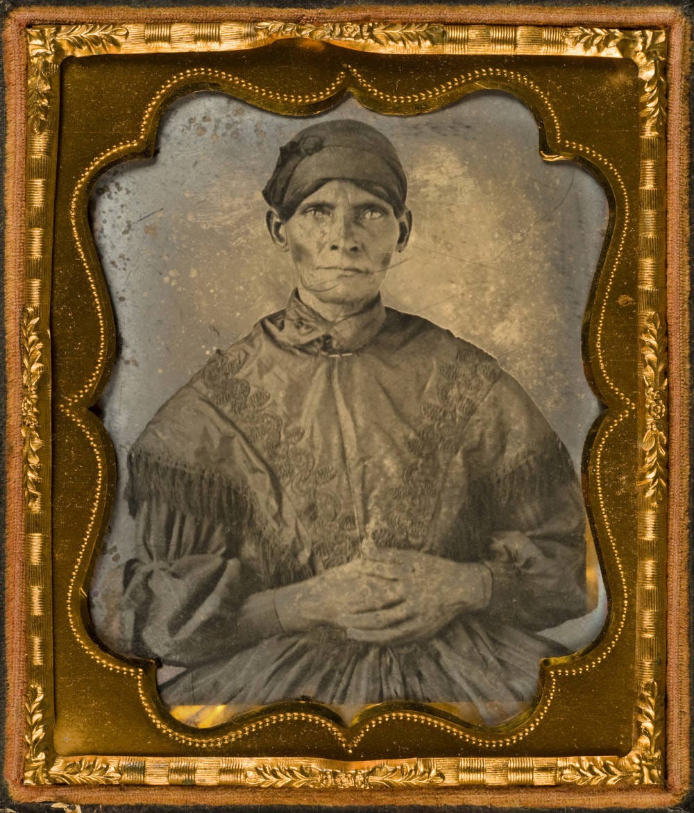“Portrait of an African American woman, identified in back of case with an inscription that reads ‘’Della Lowe - sold apples in Marshall, Texas.’‘ She may have been an ex-slave or free black. Source: Lawrence T. Jones III.” - Southern Methodist University Libraries